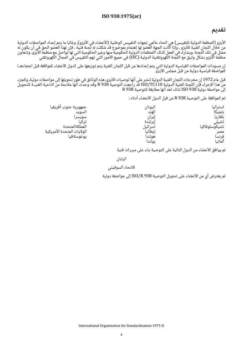 La Recommandation lSO/R 938 avait été approuvée par les Comités Membres des