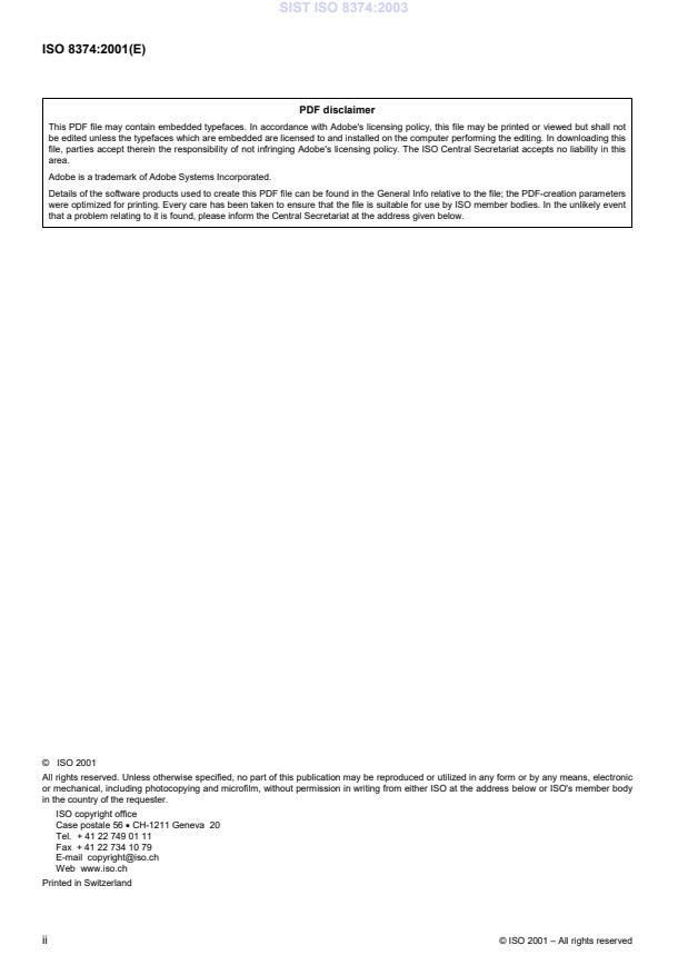 Ta slovenski standard je istoveten z: ISO 8374:2001