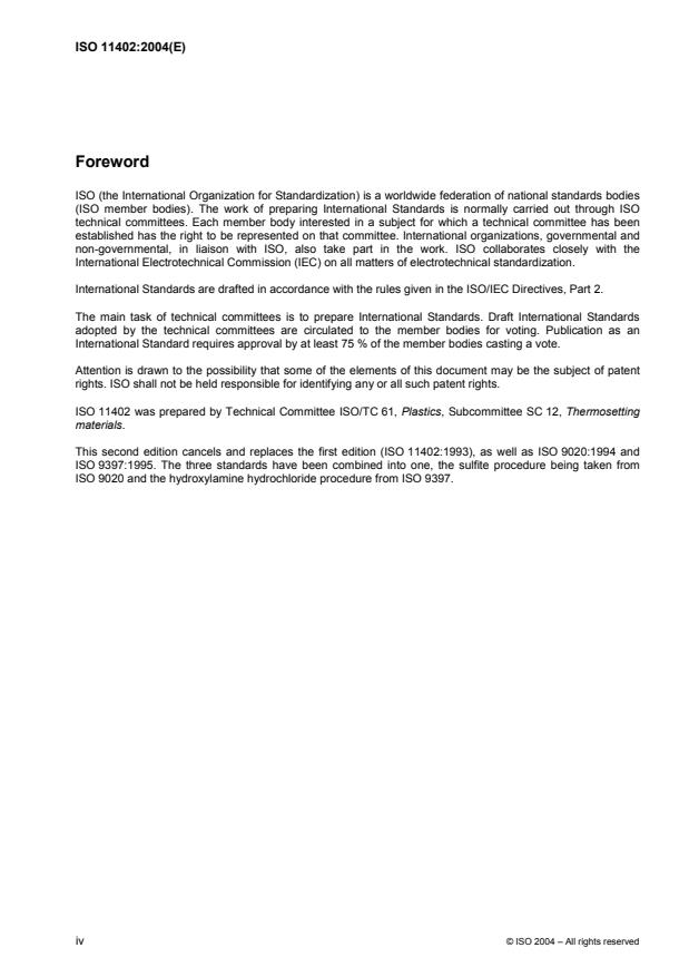 Keywords: ISO 11402:2004, free‑formaldehyde determination, phenolic resins, amino resins, condensation resins, hydroxylamine hydrochloride, sulfite procedure, KCN procedure, potentiometric titration, iodometric titration, resin quality control, workplace safety.