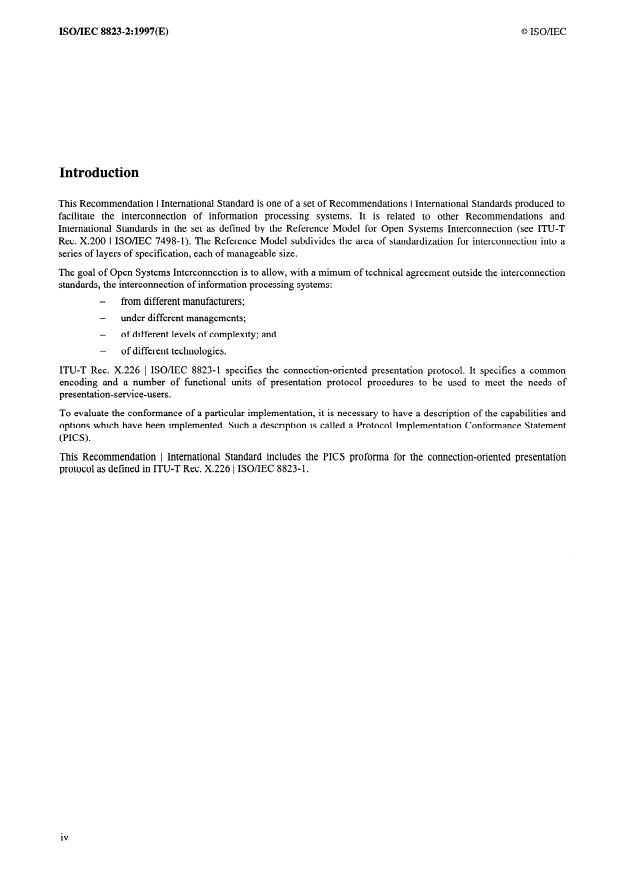 The pur-pose of this PICS proforma is to provide suppliers of implementations of ITU-T Rec. X.226 1 ISO/IEC 8823-1