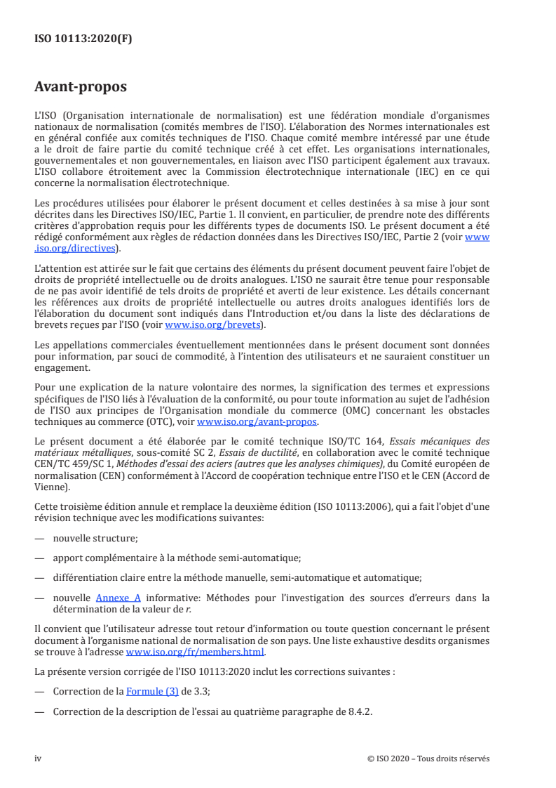 ISO 10113:2020 - Matériaux métalliques — Tôles et bandes — Détermination du coefficient d'anisotropie plastique Released:11/24/2020