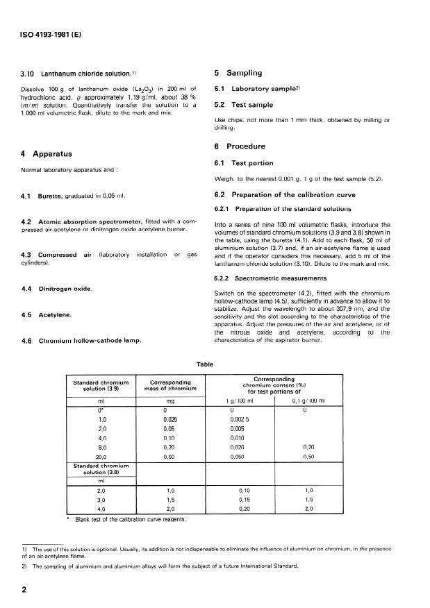 ISO 4193:1981 - Aluminium and aluminium alloys -- Determination of chromium content -- Flame atomic absorption spectrometric method