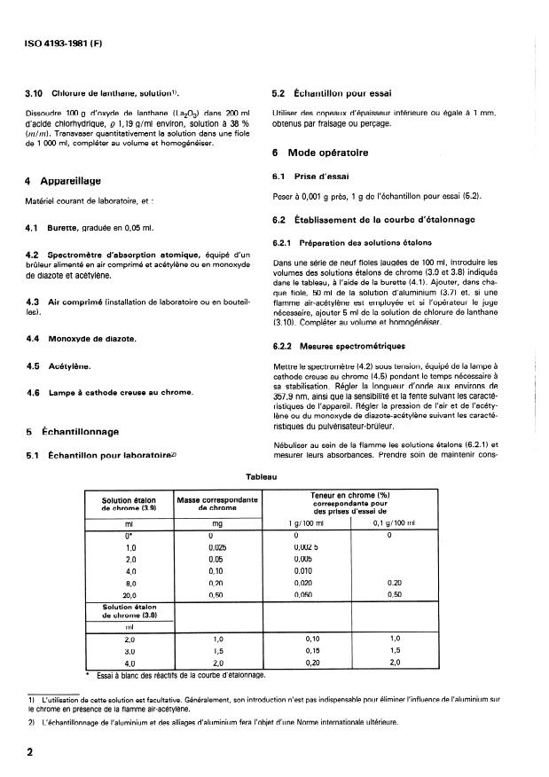 ISO 4193:1981 - Aluminium et alliages d'aluminium -- Dosage du chrome -- Méthode par spectrométrie d'absorption atomique dans la flamme