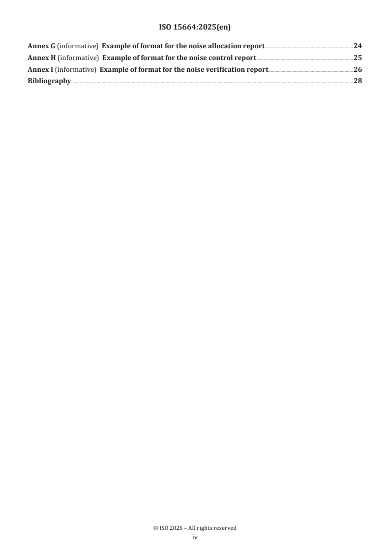 - Required engineering phase reports, equipment noise tests, plant noise acceptance tests, verification, and remedial actions (see Clauses 7–8 and Annexes F–I).