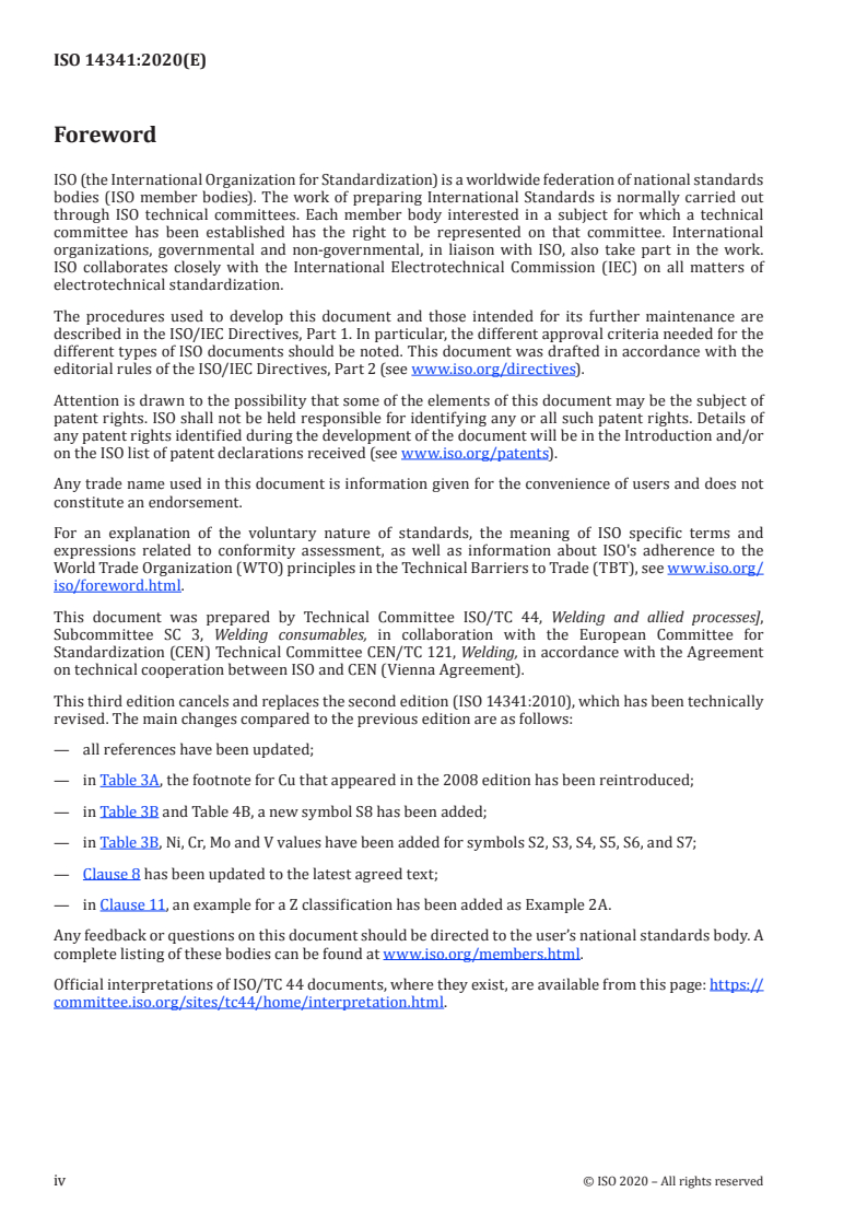 ISO 14341:2020 - Welding consumables — Wire electrodes and weld deposits for gas shielded metal arc welding of non alloy and fine grain steels — Classification Released:8/21/2020