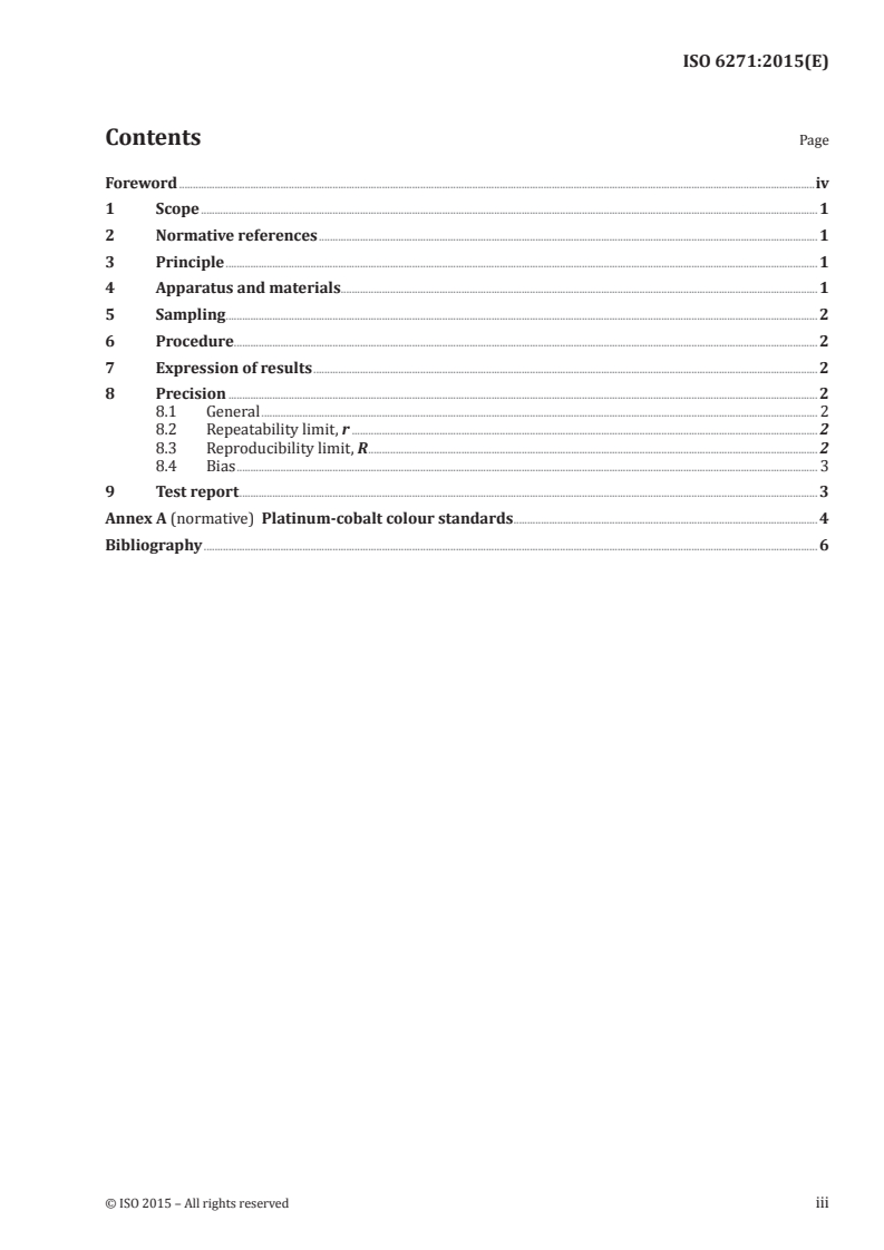ISO 6271:2015 - Clear liquids — Estimation of colour by the platinum-cobalt colour scale/30/2015