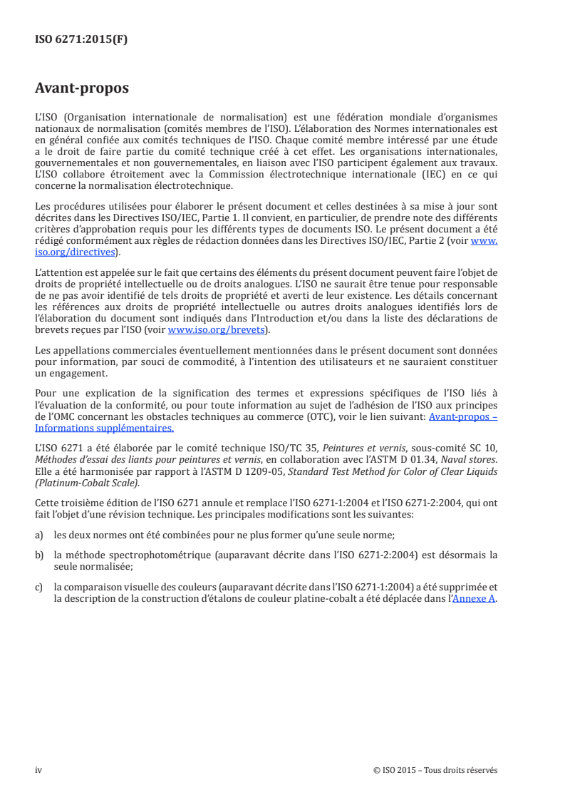 Cette troisième édition de l’ISO 6271 annule et remplace l’ISO 6271-1:2004 et l’ISO 6271-2:2004, qui ont