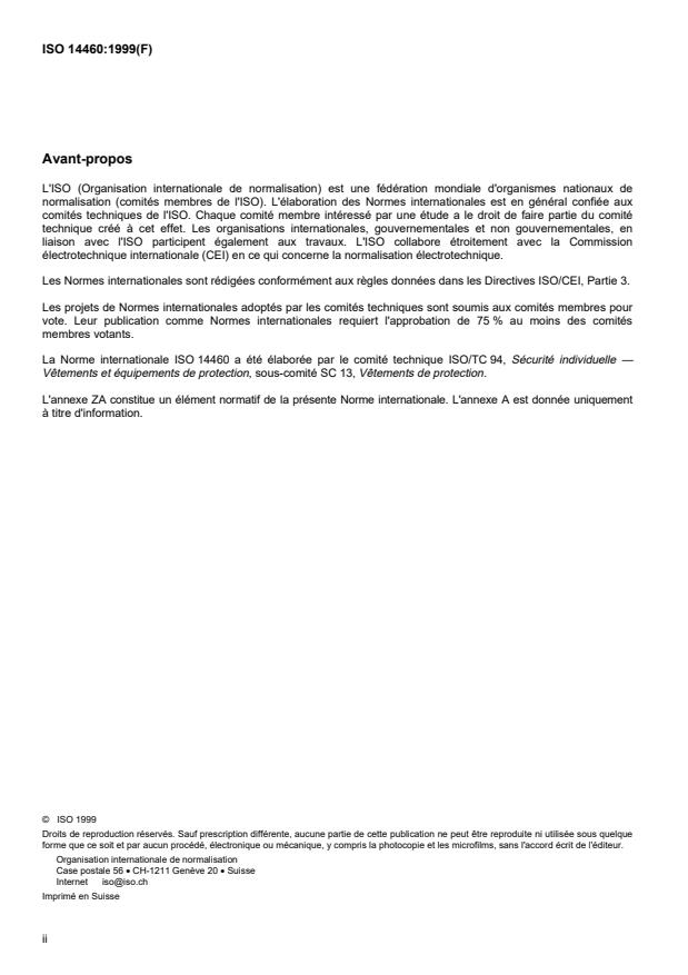 International Standard ISO 14460 was prepared by Technical Committee ISO/TC 94, Personal safety — Protective