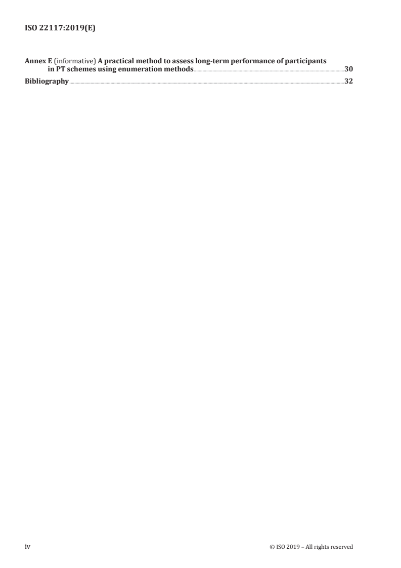 ISO 22117:2019 is a standard published by the International Organization for Standardization (ISO). Its full title is "Microbiology of the food chain - Specific requirements and guidance for proficiency testing by interlaboratory comparison". This standard covers: This document specifies requirements and gives guidelines for the organization of proficiency testing (PT) schemes for microbiological examinations of a) foods and beverages, b) feeding animals, c) environmental samples from food and feed production and handling, and d) primary production stages. This document is also applicable to the microbiological examination of water where water is either used in food production or is regarded as a food in national legislation. This document relates to the technical organization and implementation of PT schemes, as well as the statistical treatment of results of microbiological examinations. This document is designed for use with ISO/IEC 17043 and ISO 13528, and deals only with areas where specific or additional details are necessary for PT schemes dealing with microbiological examinations for the areas specified in the first paragraph.