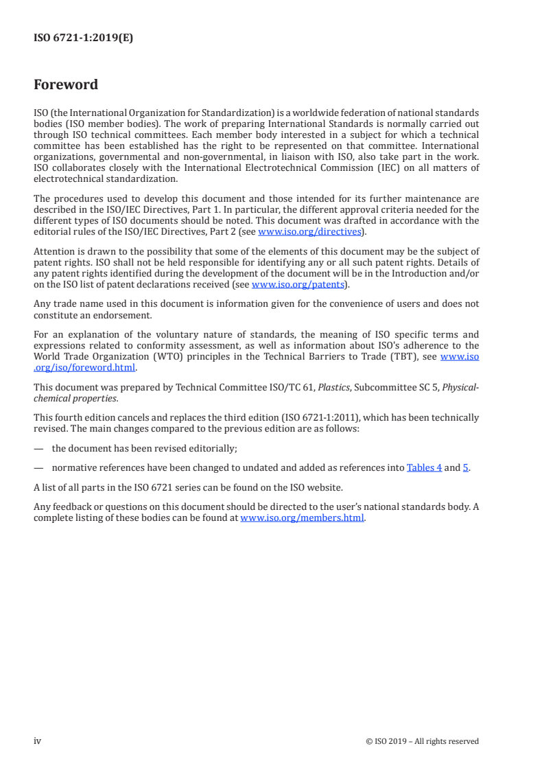 ISO 6721-1:2019 has the following relationships with other standards: It is inter standard links to ISO 6721-1:2011. Understanding these relationships helps ensure you are using the most current and applicable version of the standard.