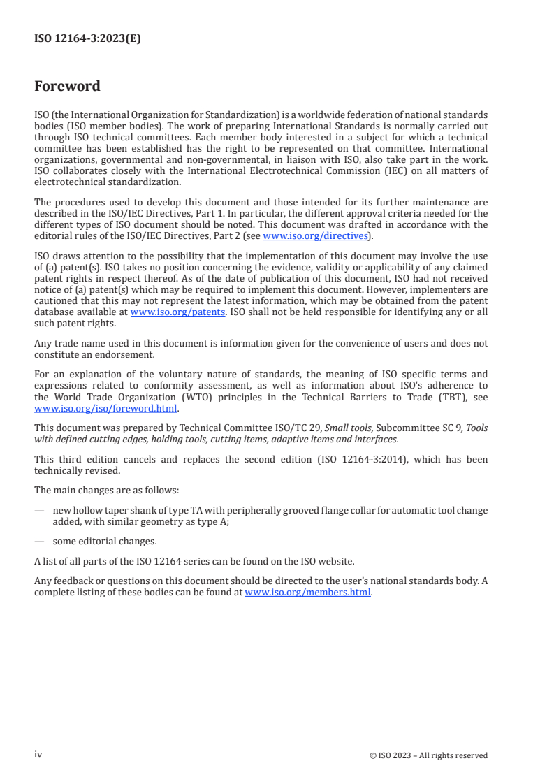 ISO 12164-3:2023 - Hollow taper interface with flange contact surface — Part 3: Shanks of types T, TA and U Released:10/20/2023