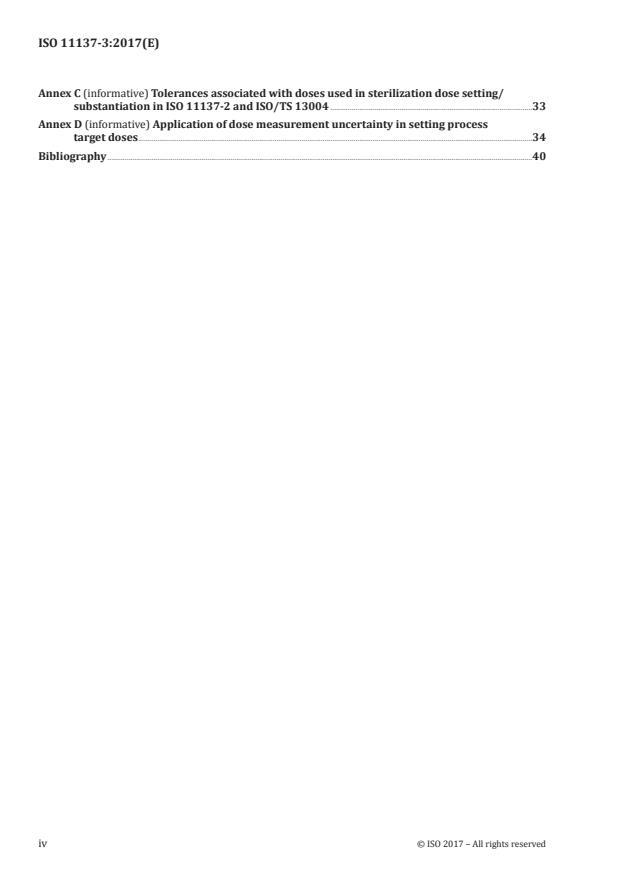 ISO 11137-3:2017 is a standard published by the International Organization for Standardization (ISO). Its full title is "Sterilization of health care products - Radiation - Part 3: Guidance on dosimetric aspects of development, validation and routine control". This standard covers: ISO 11137-3:2017 gives guidance on meeting the requirements in ISO 11137-1 and ISO 11137-2 and in ISO/TS 13004 relating to dosimetry and its use in development, validation and routine control of a radiation sterilization process.