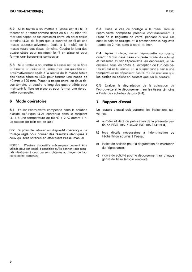 Textiles — Essais de solidité des teintures — Partie E14: Solidité des teintures au foulon acide: Essai doux