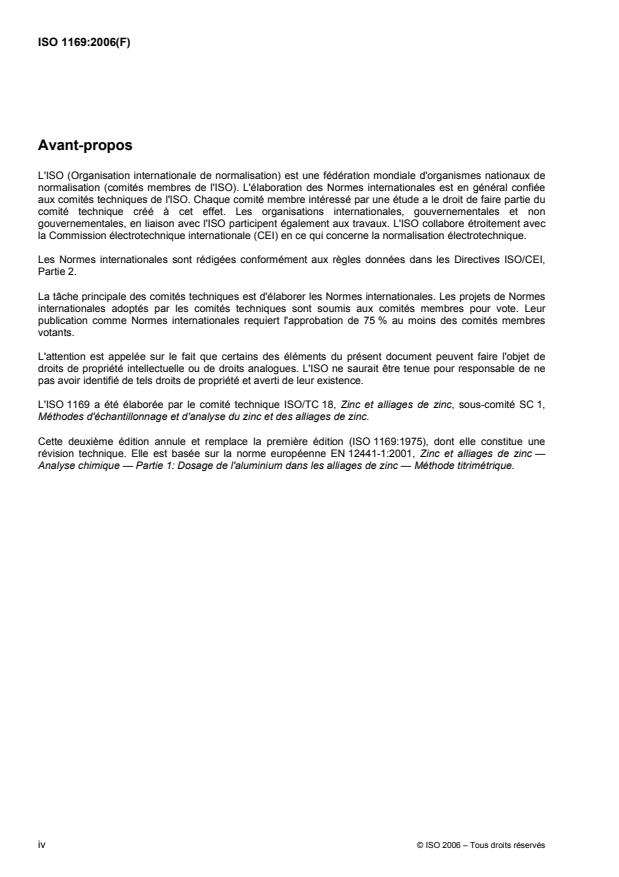 ISO 1169:2006 - Alliages de zinc -- Dosage de l'aluminium -- Méthode titrimétrique