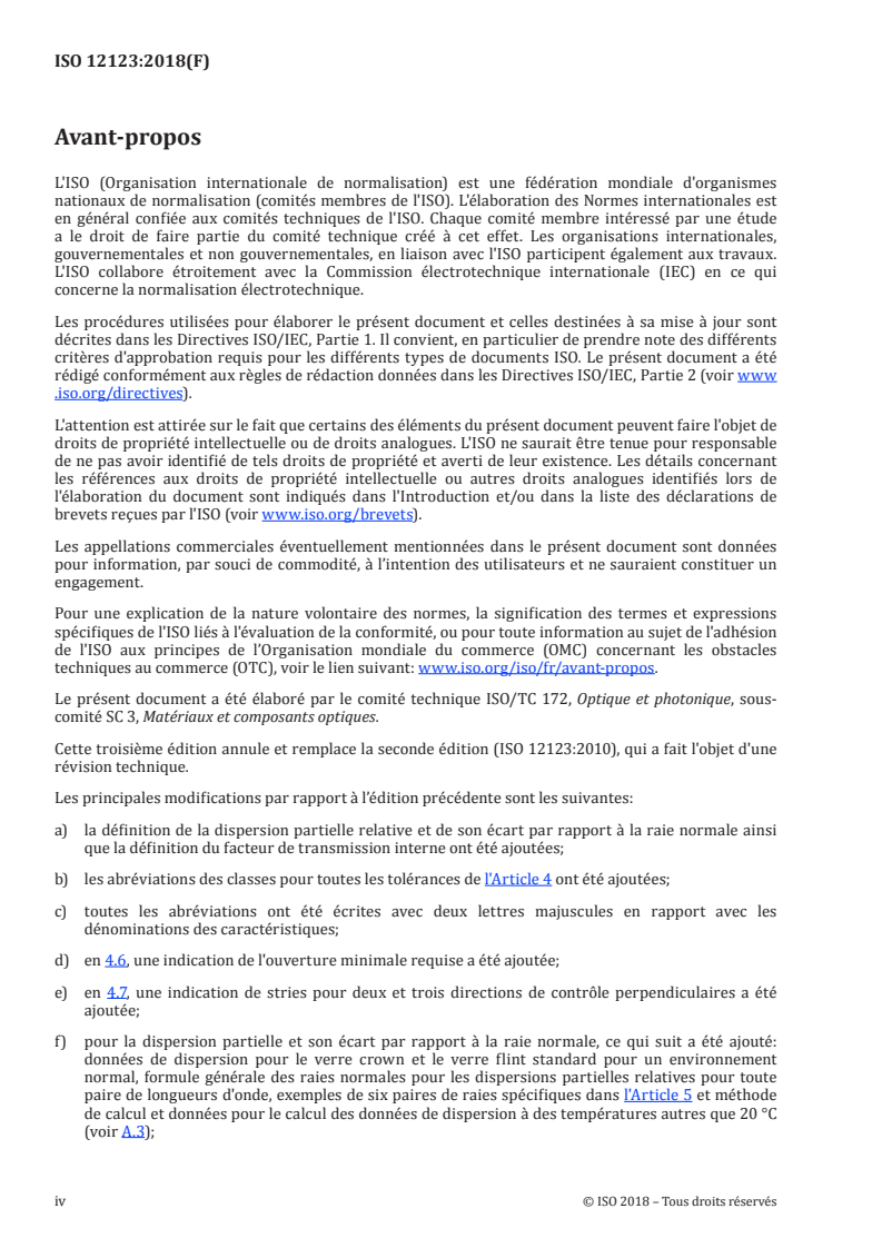 ISO 12123:2018 - Optique et photonique — Spécification d'un verre d'optique brut Released:11/30/2018