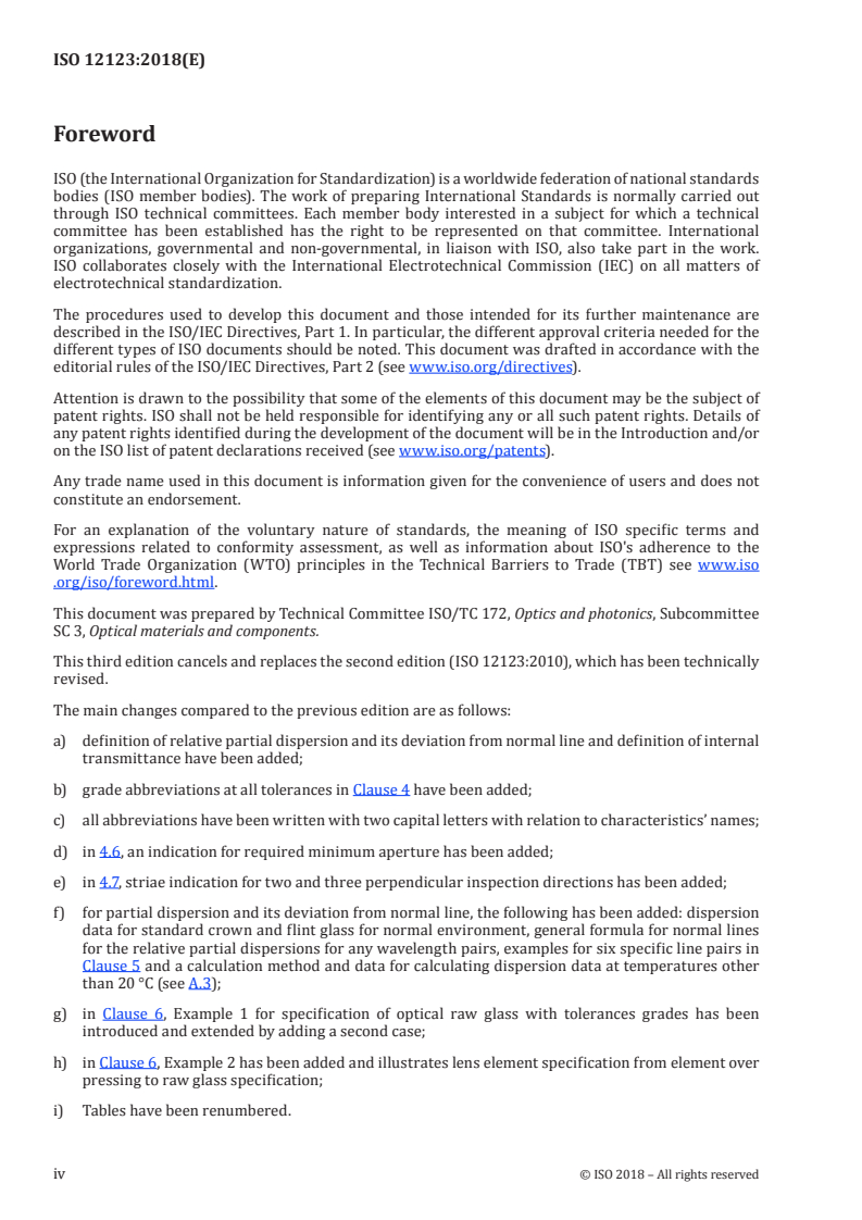 ISO 12123:2018 - Optics and photonics — Specification of raw optical glass Released:11/30/2018