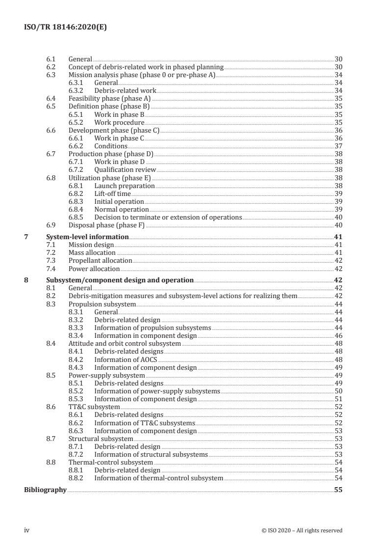 - Debris work across development phases: debris‑related tasks and reviews in concept, feasibility, definition, development, production, utilization and disposal phases (phase 0/A–F).