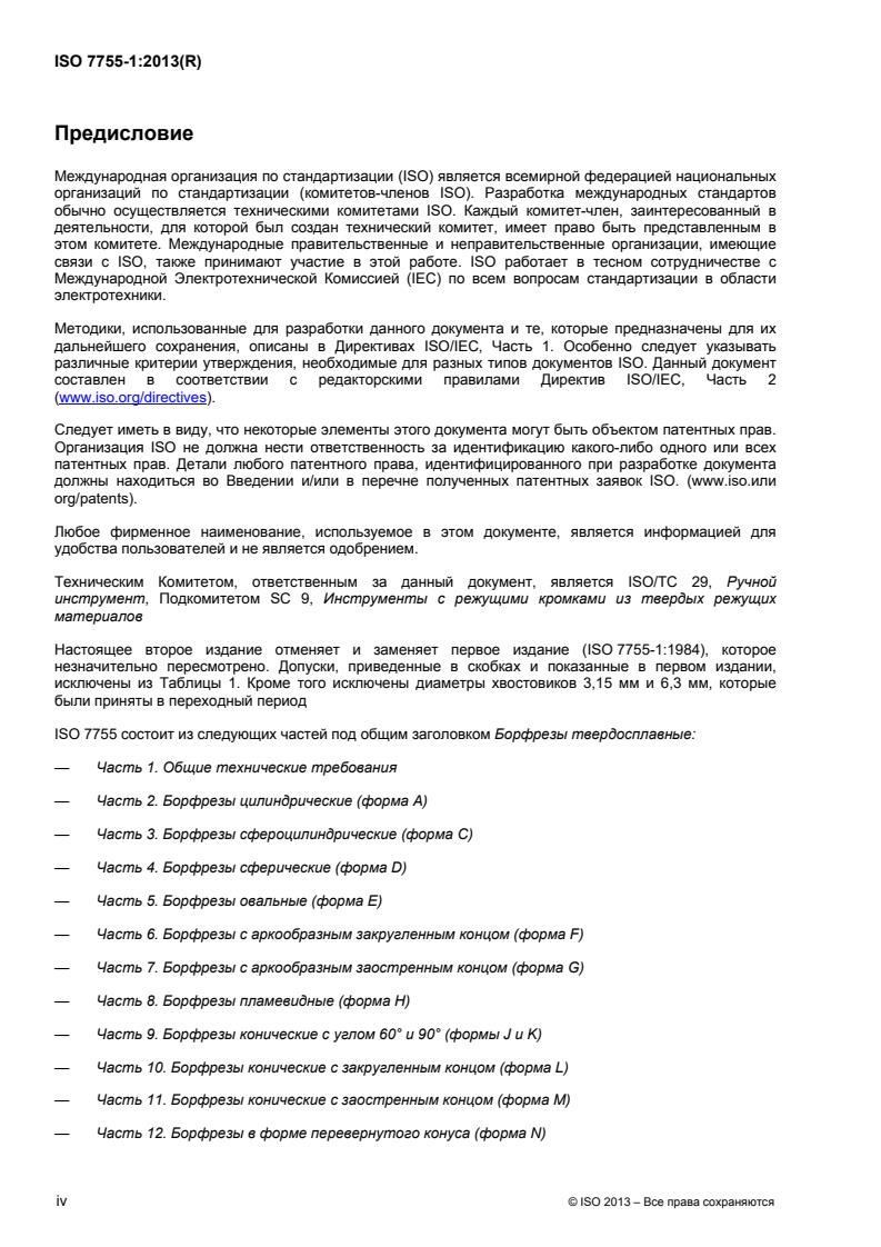ISO 7755 состоит из следующих частей под общим заголовком Борфрезы твердосплавные:
