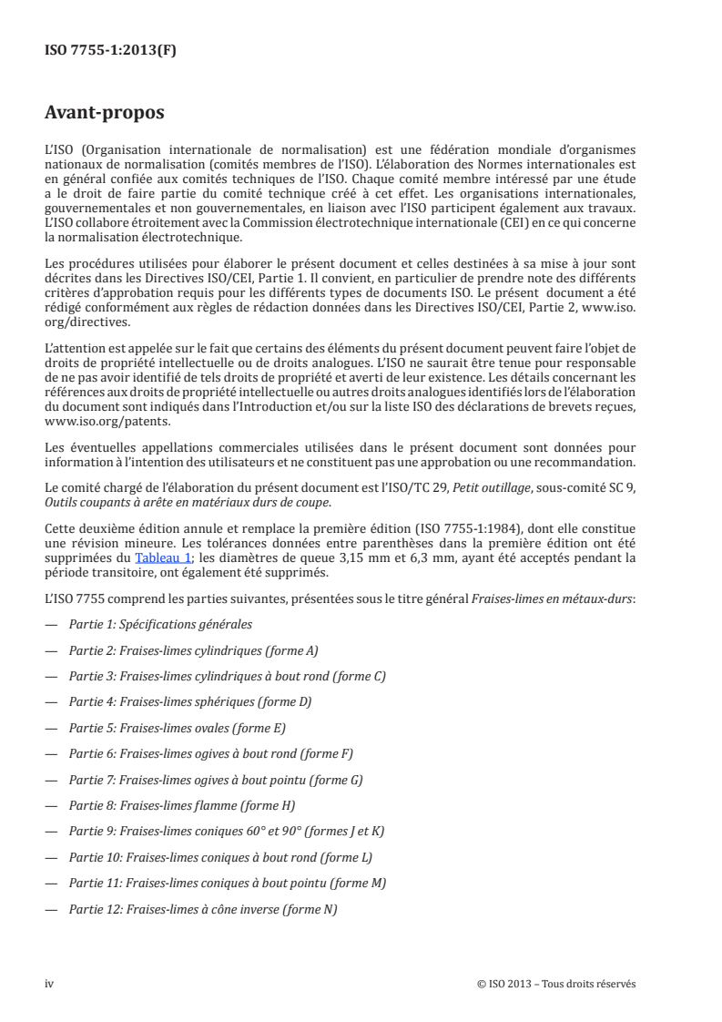 ISO 7755-1:2013 - Fraises-limes en métaux-durs — Partie 1: Spécifications générales Released:8/8/2013