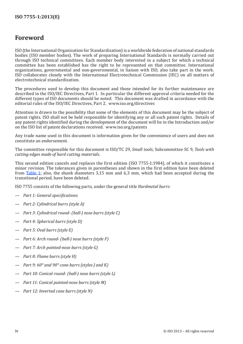 ISO 7755-1:2013 - Hardmetal burrs — Part 1: General specifications Released:8/8/2013