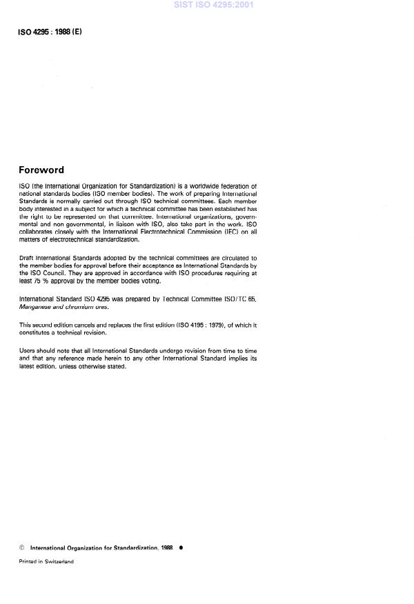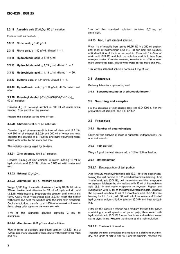 Keywords: ISO 4295:1988, manganese ores, aluminium determination, photometric method, chromazurol‑S, oxine gravimetric method, quinolin‑8‑ol, analytical methods, laboratory procedure, chemical analysis.