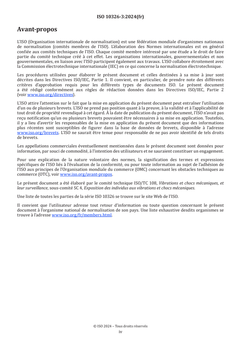 ISO 10326-3:2024 is a standard published by the International Organization for Standardization (ISO). Its full title is "Mechanical vibration - Laboratory method for evaluating vehicle seat vibration - Part 3: Specification of dynamic dummies for Z-axis motion". This standard covers: This document specifies dynamic dummies used as replacements for participants in vibration tests of vehicle seats in laboratory. This document is applicable to seats installed in earth-moving machinery, agricultural wheeled tractors, and industrial trucks. This document specifies technical requirements, acceptance criteria, and a validation test for dynamic dummies representing the human body in two mass groups: lightweight (52 kg to 55 kg) and heavyweight (98 kg to 115 kg). It only applies to passive and active dynamic dummies used for vibration tests of vehicle seats in the Z-axis (vertical) direction. This document defines, for the two mass groups, the biodynamic response characteristics that the dynamic dummies are required to reproduce to represent those of the participants to be replaced. This document gives guidance on conducting future research to explore the degree of convergence that can be reached when the dynamic performance of seats is measured with participants and with dynamic dummies conforming to this document. NOTE 1 For seat testing, results have shown that the benefit of using a dynamic dummy is highly dependent on the excitation and dynamic characteristics of the seats. Depending on the type of vibration excitation applied, studies have suggested that the use of dynamic dummies can show benefit over an inert mass of equivalent weight only when testing suspension seats with higher natural frequency (>2 Hz). NOTE 2 The use of dynamic dummies has been reported to tend to overestimate the vibration isolation performance of seats compared with that measured with participants. Several factors can be in cause and require further investigation, one of them being the influence of the legs possibly not being adequately considered when using dynamic dummies.