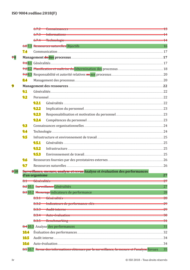 REDLINE ISO 9004:2018 - Management de la qualité — Qualité d'un organisme — Lignes directrices pour obtenir des performances durables Released:4/3/2018