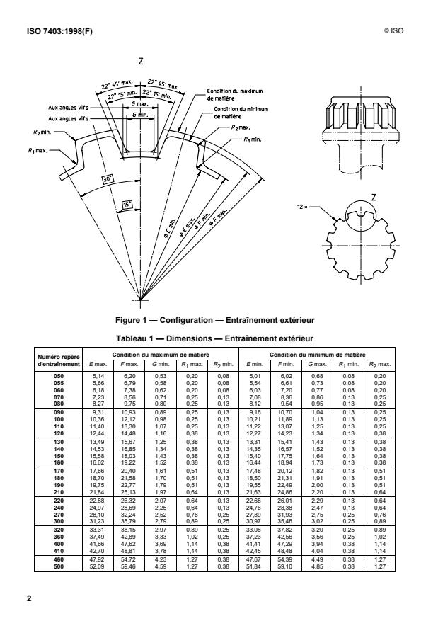 ISO 7403:1998 - Aéronautique et espace -- Entraînements cannelés -- Série métrique