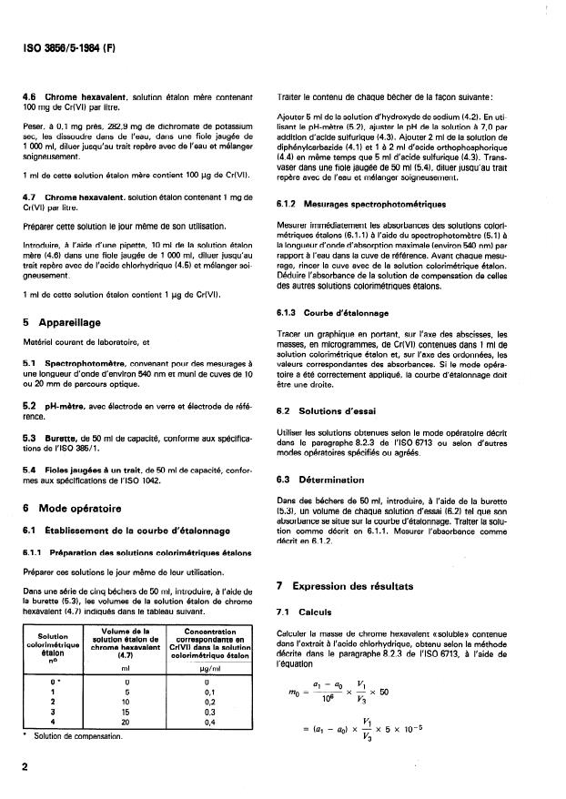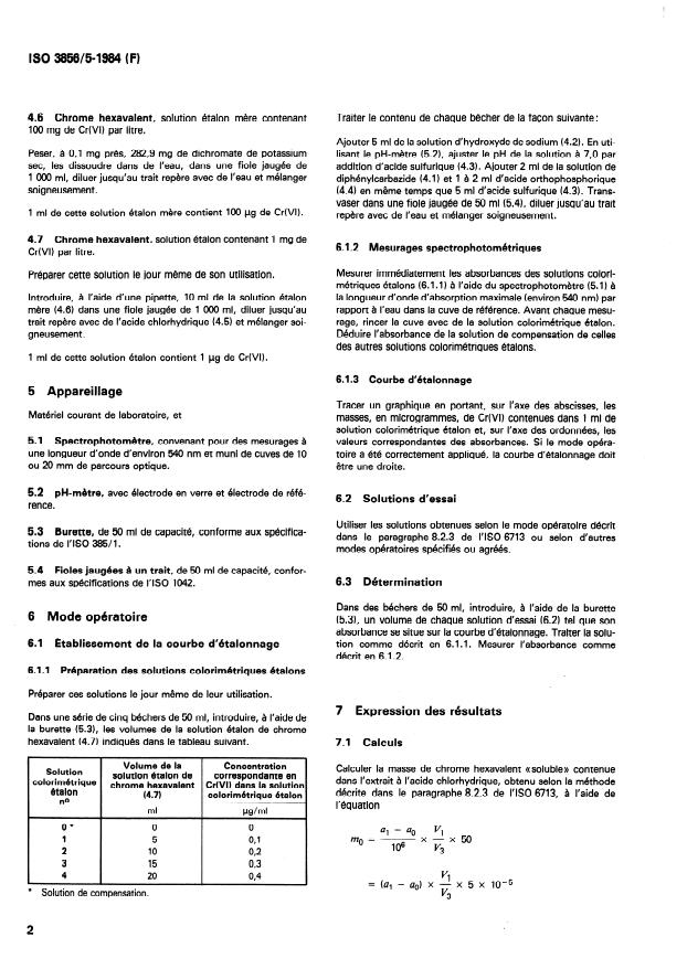 1 ml de cette solution étalon mére contient 100 pg de Cr(VI).