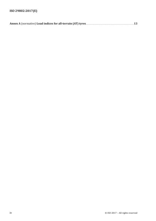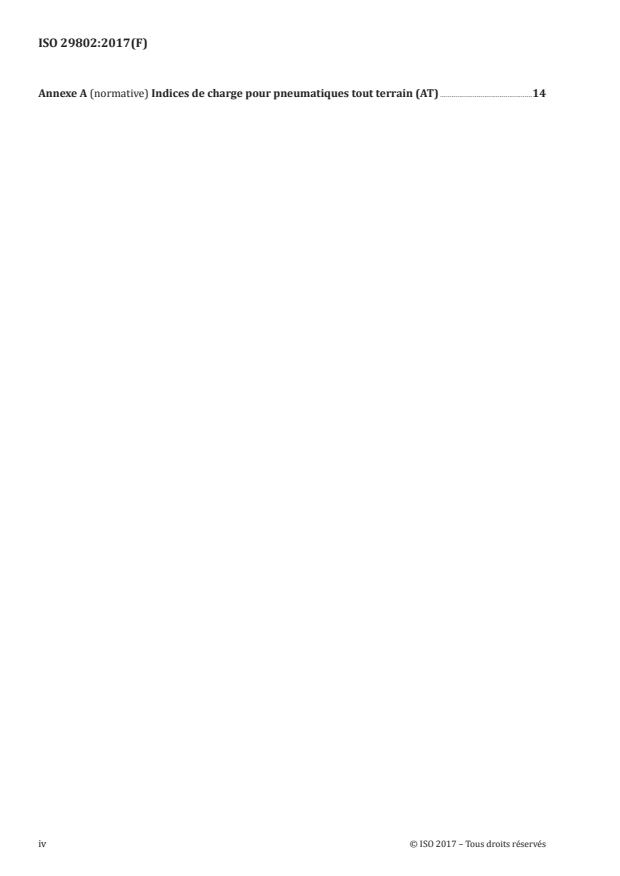 L'ISO 29802:2017 spécifie les désignations, les cotes, les marquages et les capacités de charge des pneumatiques principalement destinés aux véhicules tout terrain (ATV). Elle spécifie également la désignation, le marquage et le contour des jantes. Les pneumatiques satisfont aux paramètres suivants: a) vitesses ne dépassant pas 130 km/h (code de vitesse M); b) montés sur des jantes à base conique à 5 degrés (AT); c) codes de diamètre nominal de jante de 7 à 14 inclus.