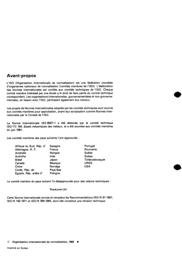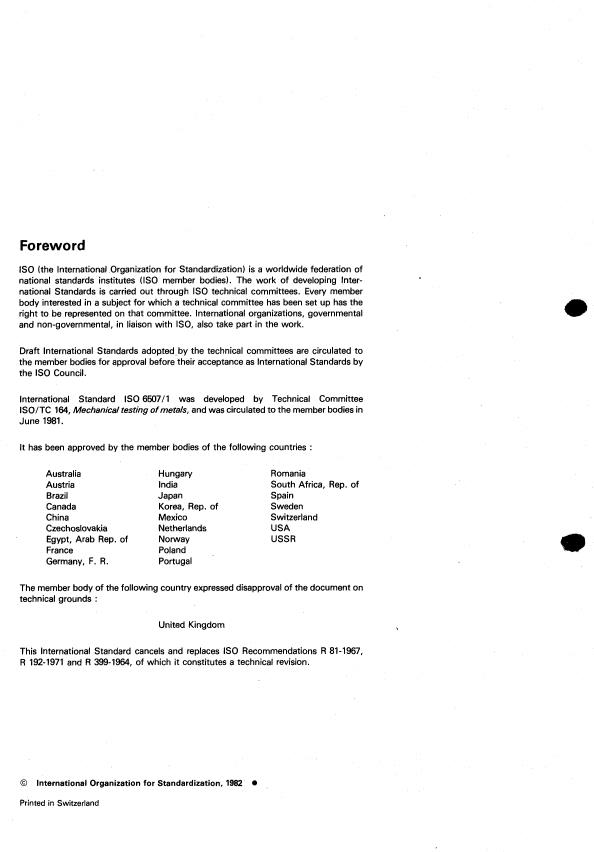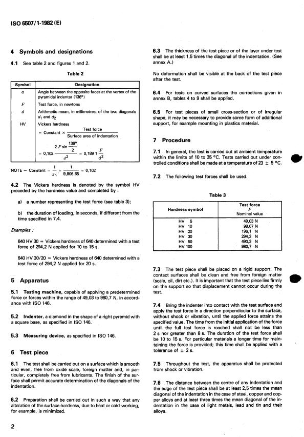 ISO 6507-1:1982 - Metallic materials -- Hardness test -- Vickers test