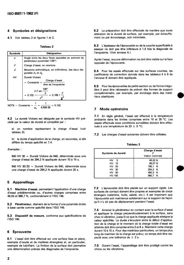 4.2 La dureté Vickers est désignée par le symbole HV pré-