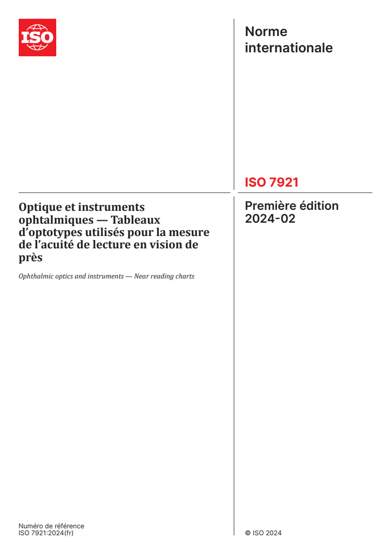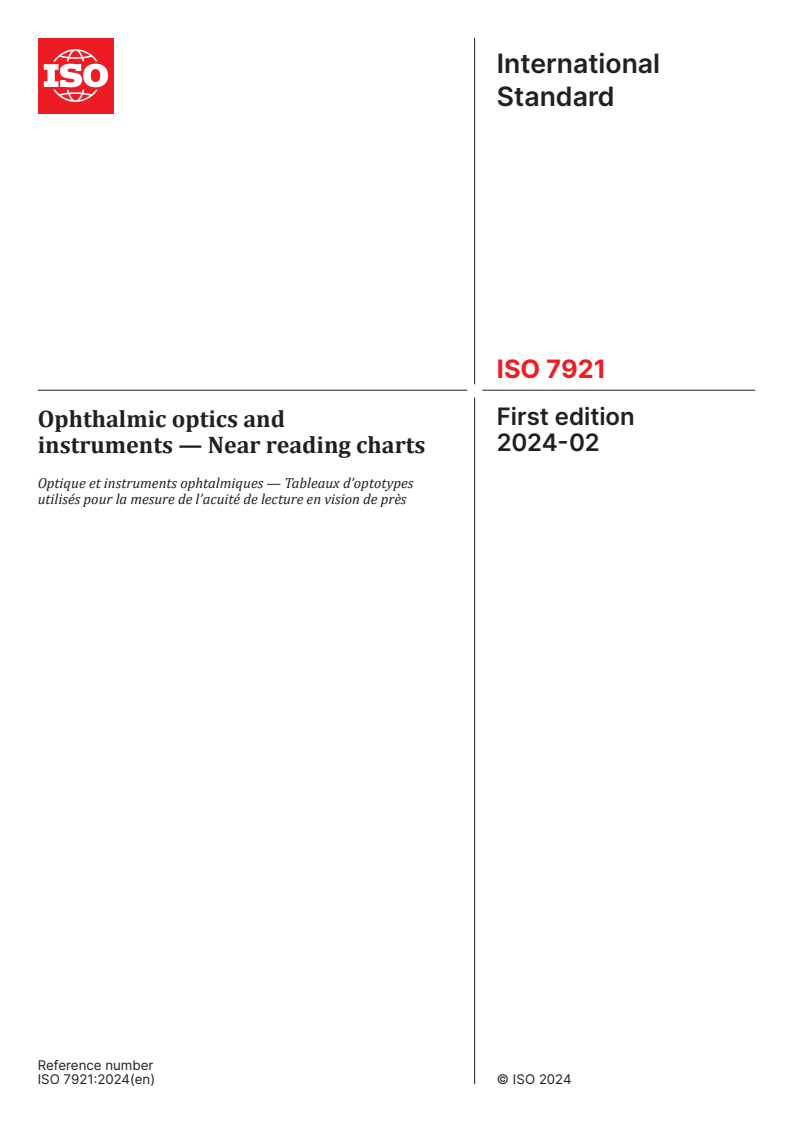 ISO 7921:2024 - Ophthalmic optics and instruments — Near reading charts Released:9. 02. 2024