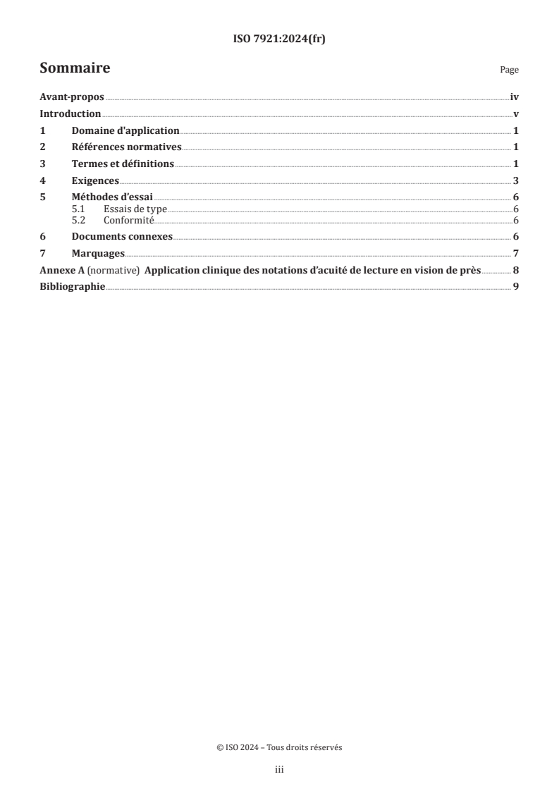 ISO 7921:2024 - Optique et instruments ophtalmiques — Tableaux d’optotypes utilisés pour la mesure de l’acuité de lecture en vision de près Released:9. 02. 2024
