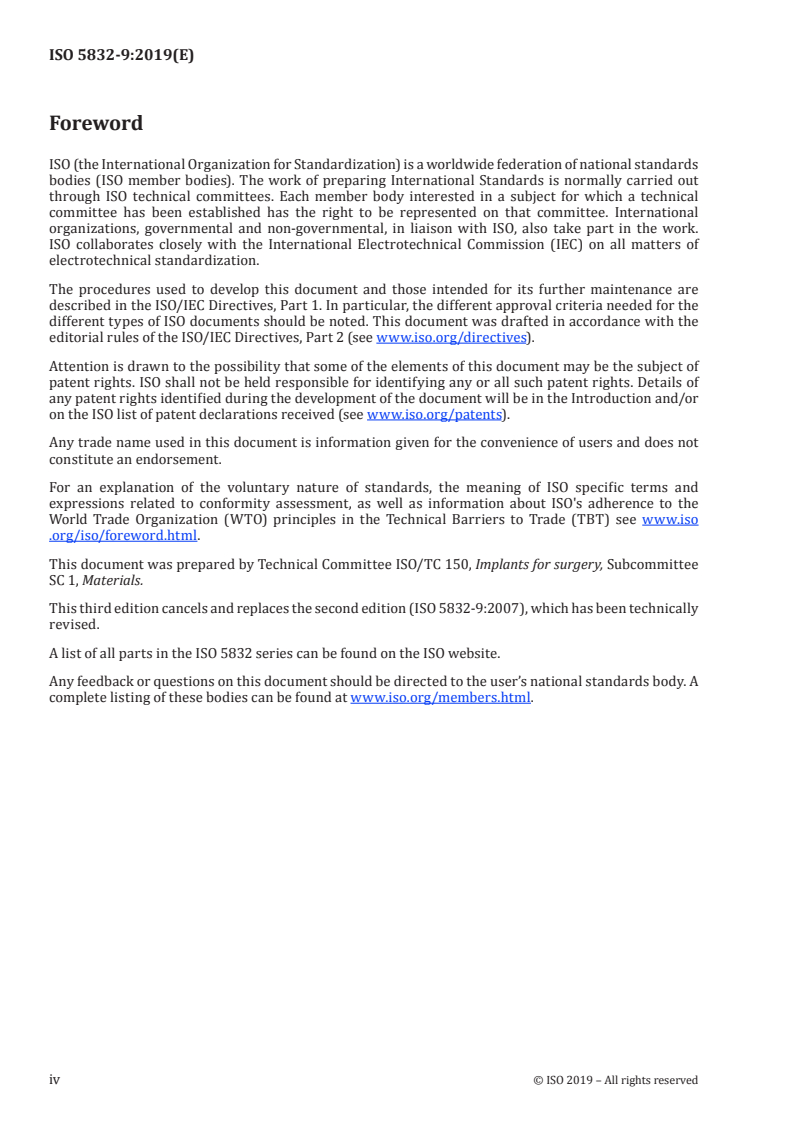 Cette troisième édition annule et remplace la deuxième édition (ISO 5832-9:2007), qui a fait l'objet