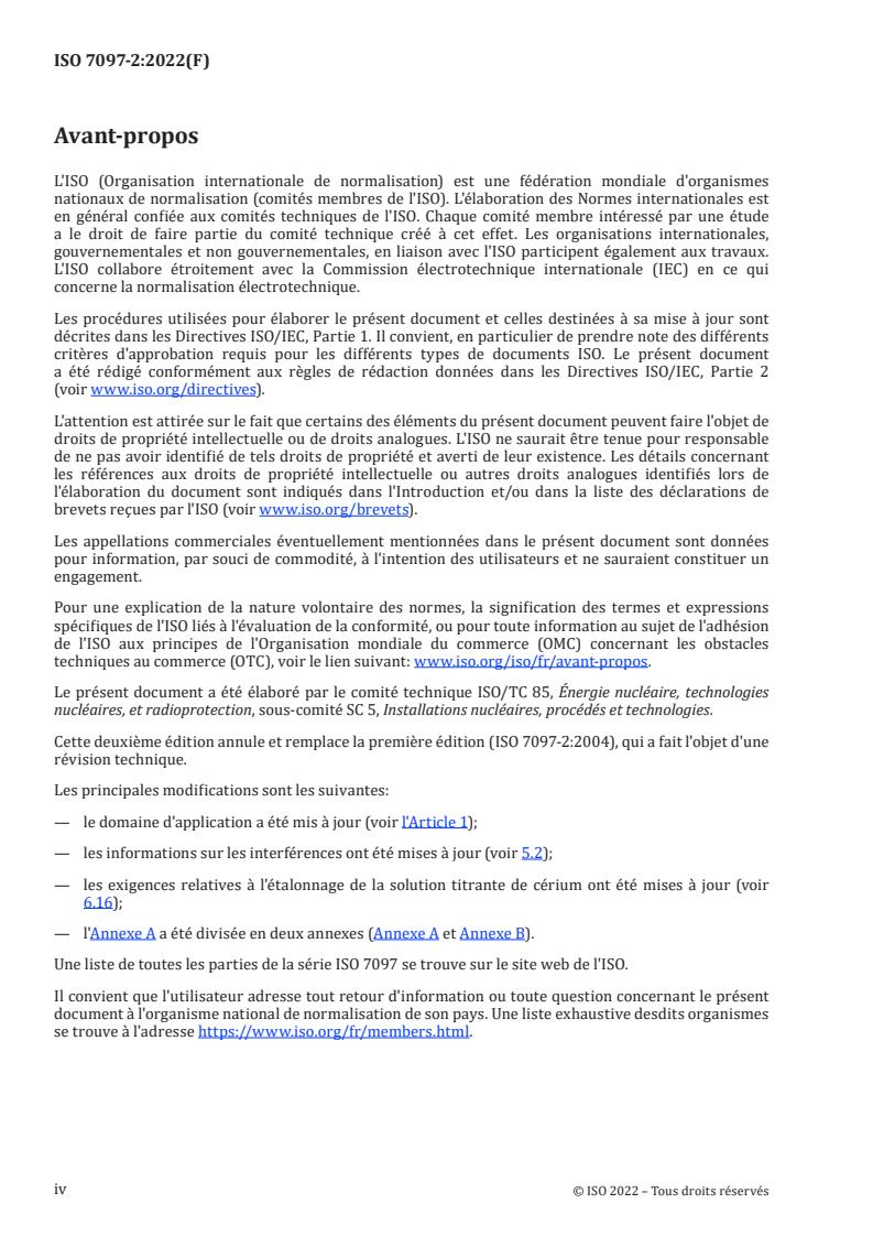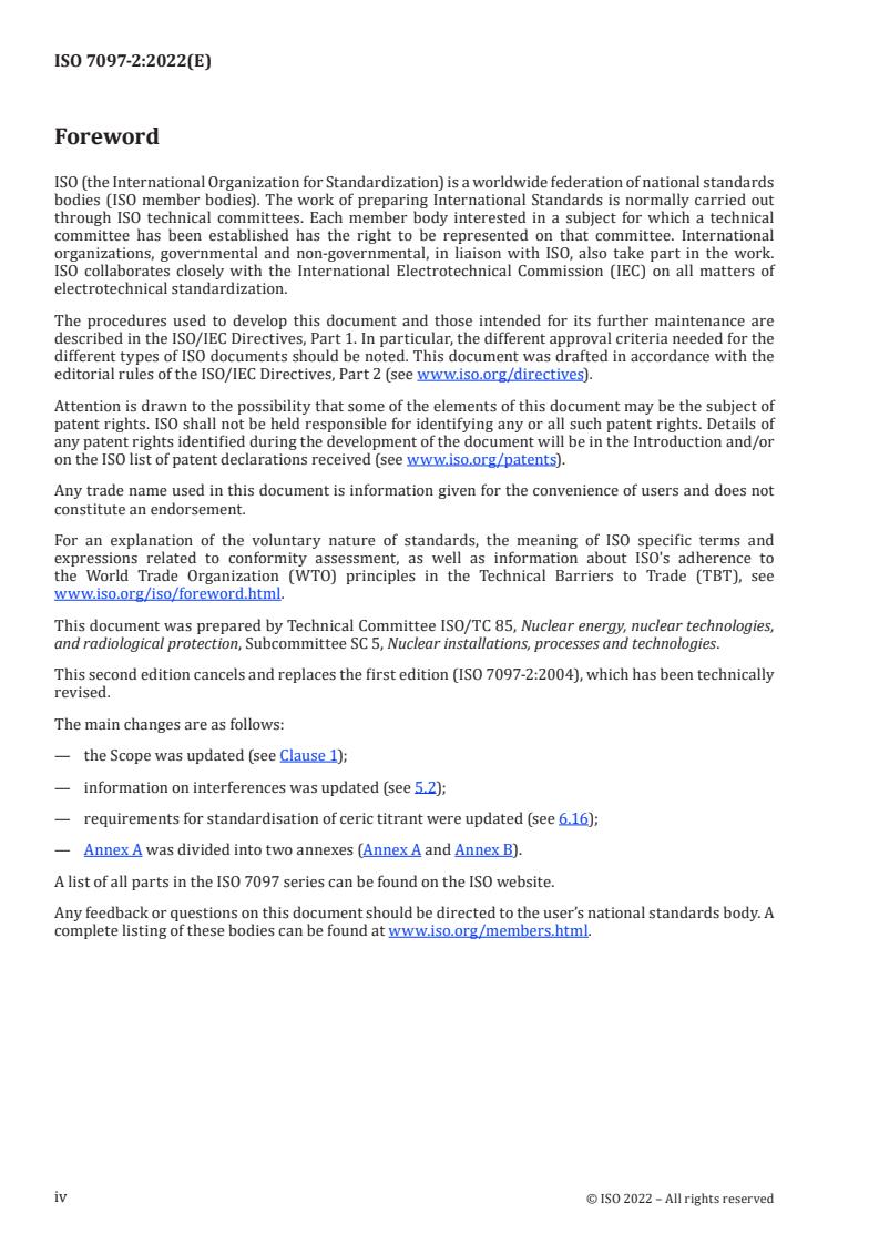 Keywords: ISO 7097-2:2022, uranium determination, cerium(IV) titration, iron(II) reduction, potentiometric titration, uranium hexafluoride, nuclear fuel analysis, mass titration, nuclear materials accountability.