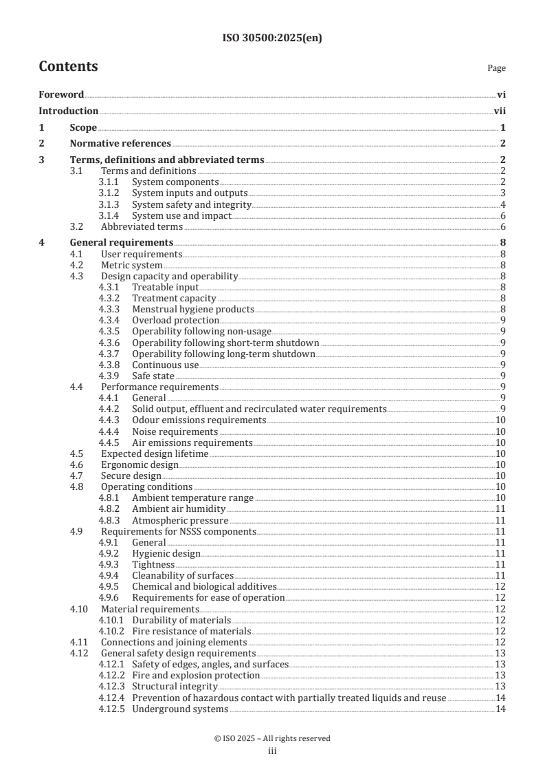 Keywords: ISO 30500, non‑sewered sanitation systems, NSSS, prefabricated integrated treatment units, off‑grid sanitation, safety and performance requirements, nutrient recovery, water reuse, life cycle assessment.