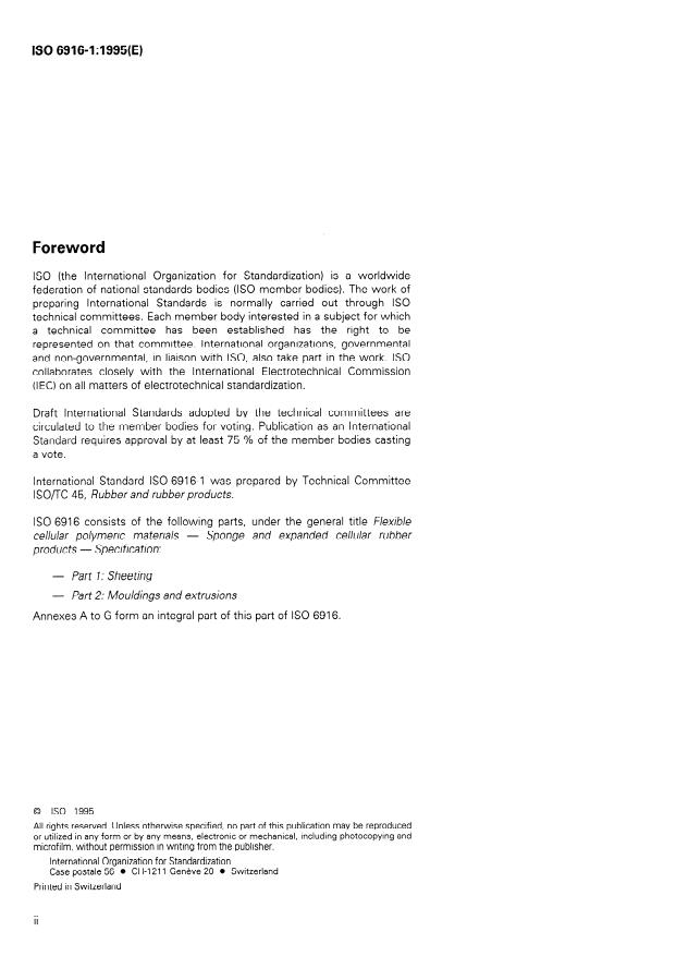 Keywords: ISO 6916-1, sponge rubber, expanded cellular rubber, flexible cellular polymeric materials, sheeting, compression‑deflection, oil resistance, ozone resistance, low‑temperature resistance, water absorption.