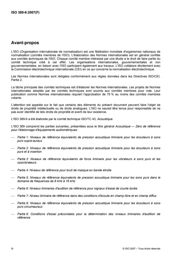 L'ISO 389-6 a été élaborée par le comité technique ISO/TC 43, Acoustique.
