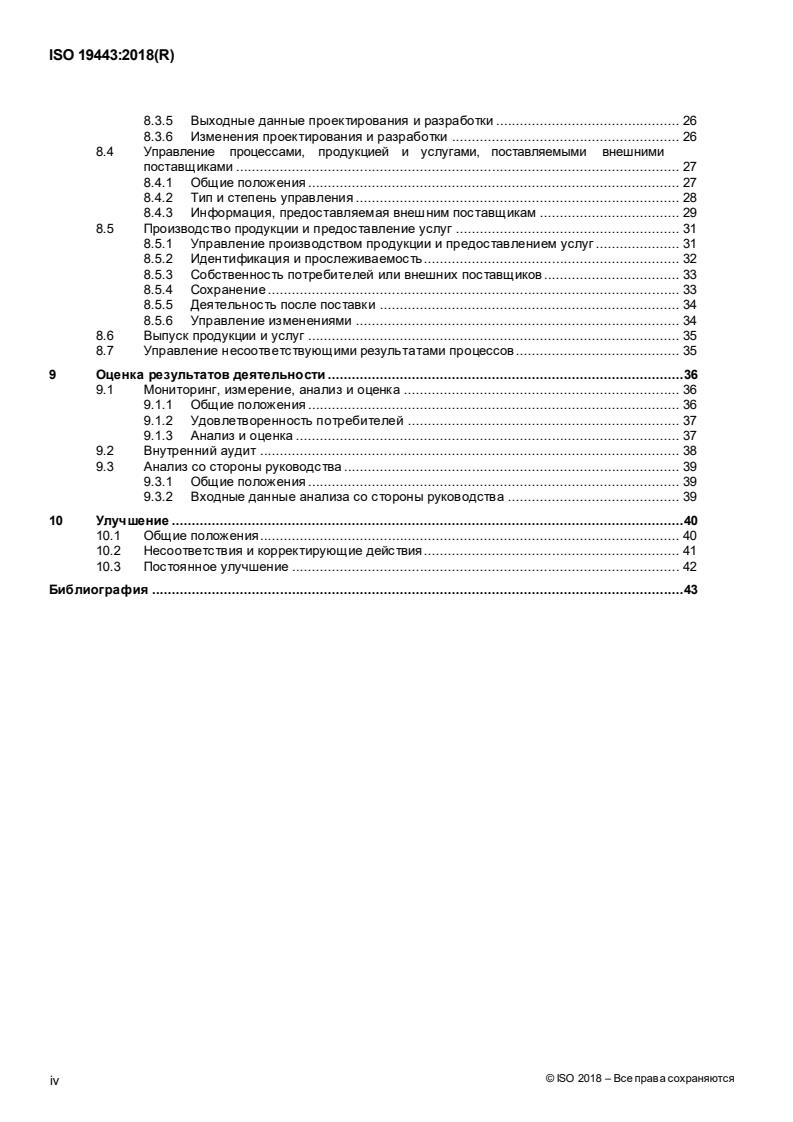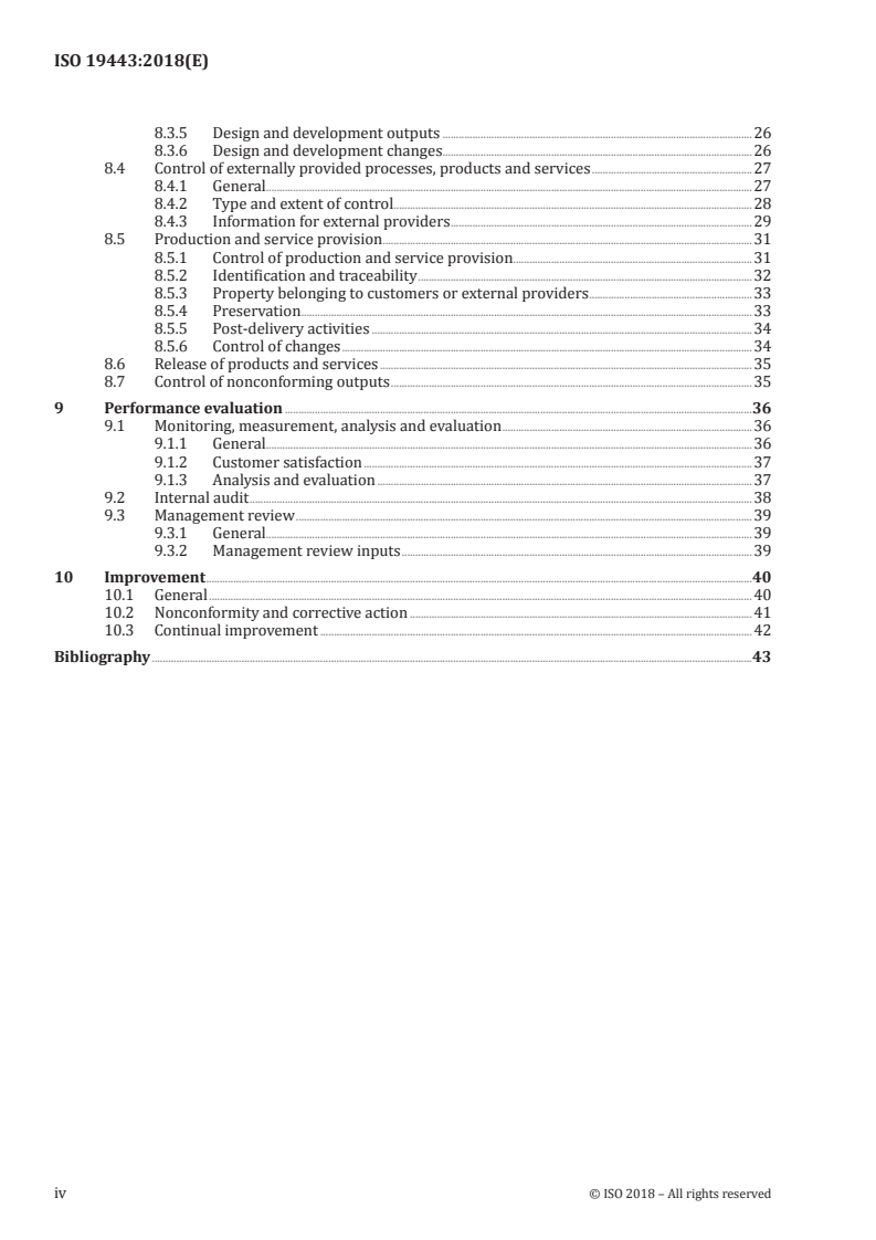 ISO 19443:2018 retains the structure of ISO 9001:2015 but adds sector-specific expectations. Major topics include: