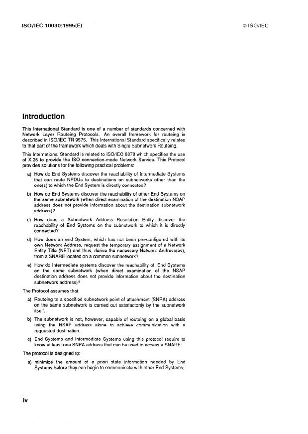 Keywords: ISO/IEC 10030, End System Routeing Information Exchange Protocol, SNARE, ISO/IEC 8878, X.25, ISO/IEC 8208, SNPA, NSAP, Network Address, routeing, single subnetwork routeing.