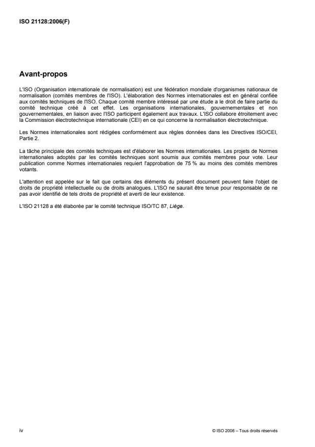 L'ISO 21128 a été élaborée par le comité technique ISO/TC 87, Liège.