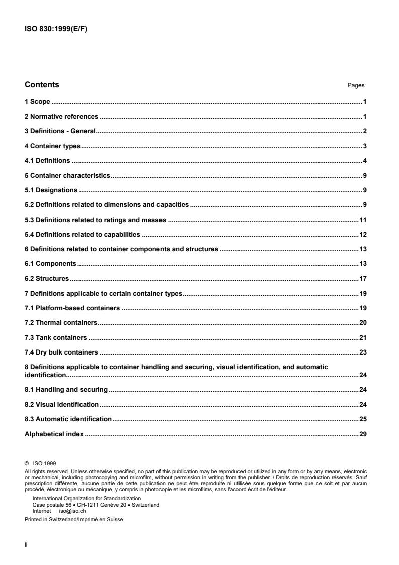 ISO 830:1999 organizes container vocabulary into clear, practical sections. Major technical topics include: