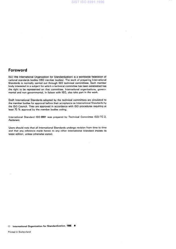 ISO 8991:1986 is classified under the following ICS (International Classification for Standards) categories: 21.060.01 - Fasteners in general. The ICS classification helps identify the subject area and facilitates finding related standards.