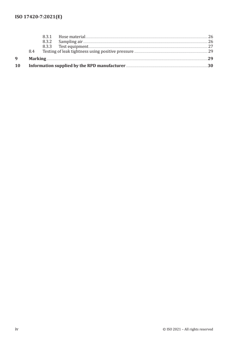ISO 17420-7:2021 specifies performance requirements for respiratory protective devices (RPD) intended for special applications - specifically marine, mining, welding and abrasive blasting. It covers both filtering RPD (e.g., particulate and gas filters) and supplied breathable gas RPD (e.g., airline and supplied-air systems) used in the workplace to protect the wearer. The standard defines classification, general and application‑specific requirements, pre‑conditioning, test methods, marking and manufacturer information.