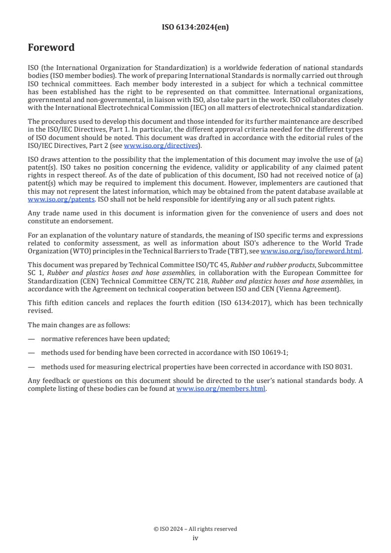 Standards referenced or aligned with ISO 6134:2024 include ISO 1402, ISO 4023, ISO 8031, ISO 10619‑1, ISO 4671, ISO 37, ISO 188, ISO 1817, ISO 4649, ISO 7326, ISO 8033 and ISO 8330 - all governing testing methods, properties and terminology for rubber hoses and components.