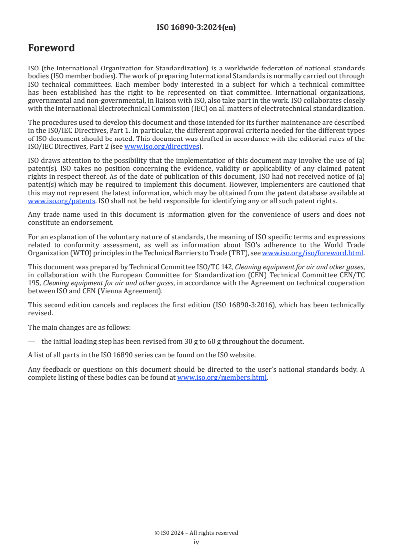 ISO 16890-3:2024 - Air filters for general ventilation — Part 3: Determination of the gravimetric efficiency and the air flow resistance versus the mass of test dust captured Released:22. 08. 2024