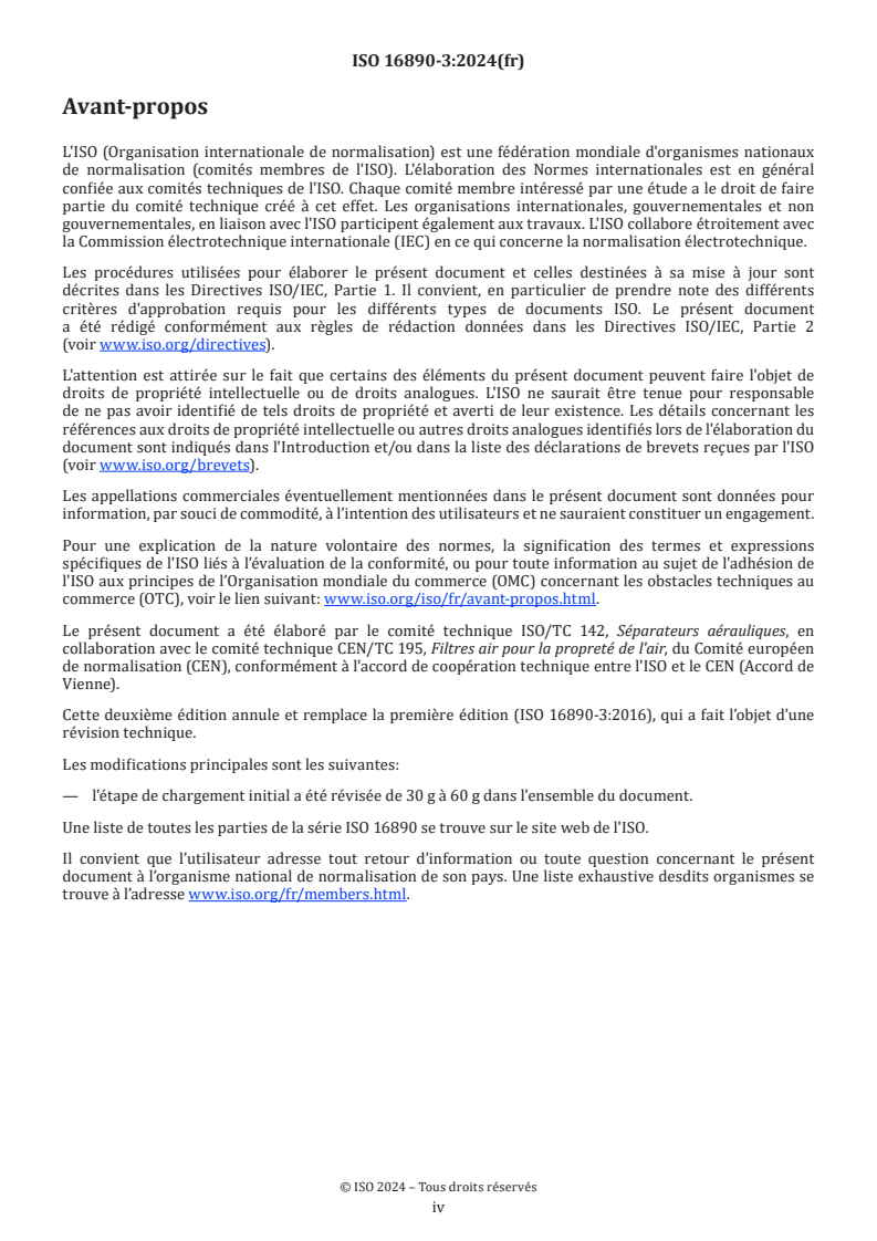 ISO 16890-3:2024 - Filtres à air de ventilation générale — Partie 3: Détermination de l'efficacité gravimétrique et de la résistance à l'écoulement de l'air par rapport à la quantité de poussière d'essai retenue Released:22. 08. 2024