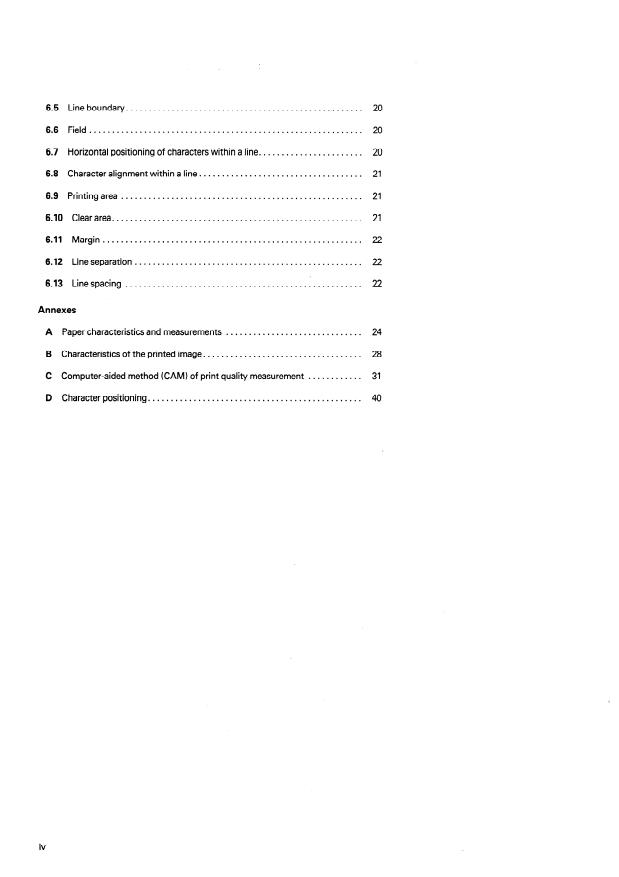 - Detailed test methods, sampling plans, and annexes that include paper measurements, printed image characteristics, a computer-aided method (CAM) for print-quality measurement, and character positioning guidance.