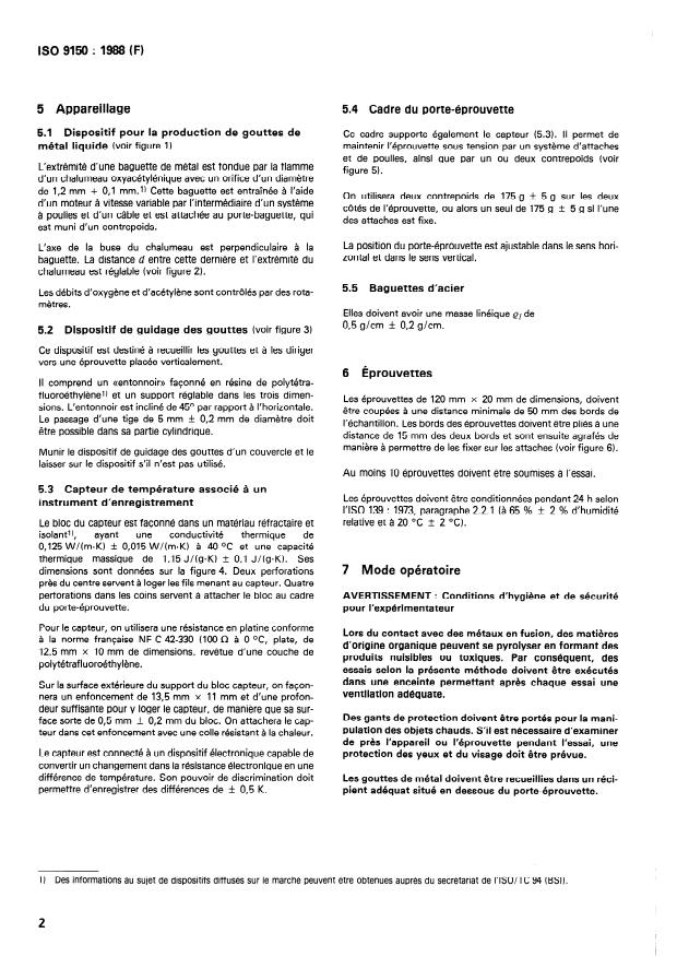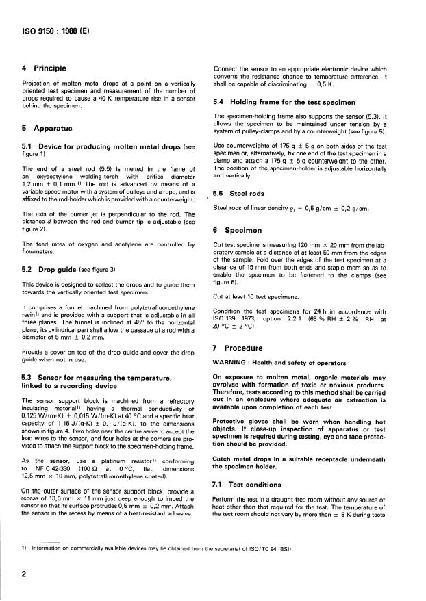 ISO 9150:1988 - Protective clothing -- Determination of behaviour of materials on impact of small splashes of molten metal